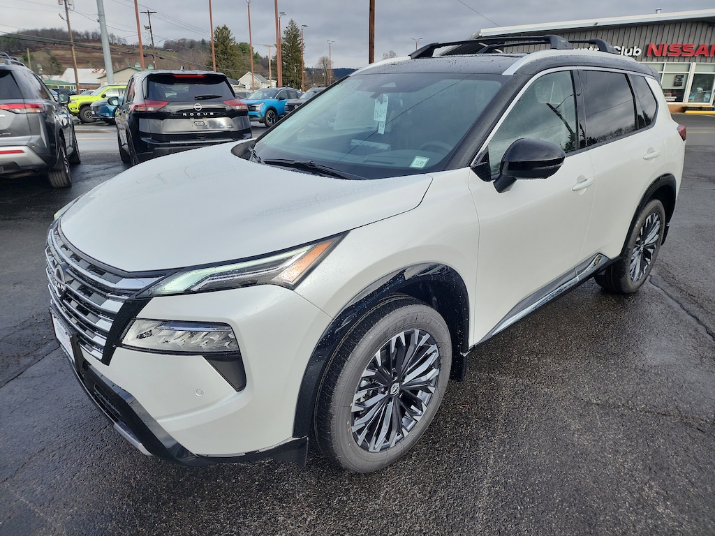 Everest White Pearl/Super Black 2026 Nissan Rogue Platinum AWD CVT with Xtronic 1.5L DOHC AWD.